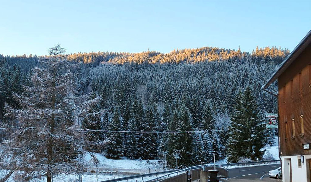 Een strenge vinger wijst ons naar een heuvel verderop en daar bevindt zich inderdaad Schluchsee-Äule, een wat ingeslapen dorpje van zo’n 2500 zielen. Op 15 km van Schluchsee en de op 850 meter hoogte gelegen Titisee zijn het walhalla voor veel toeristen.